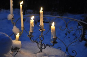 Des verres remplis de mousse avec des bougies rouges, des chandeliers chinés et patinés, des pétales de rose, une lumière tamisée, un bon feu de cheminée et l’enchantement gagne la pièce…